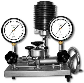 壓力計系由校驗泵(壓力發生系統)和活塞部分(壓力測量系統)兩部分組成。