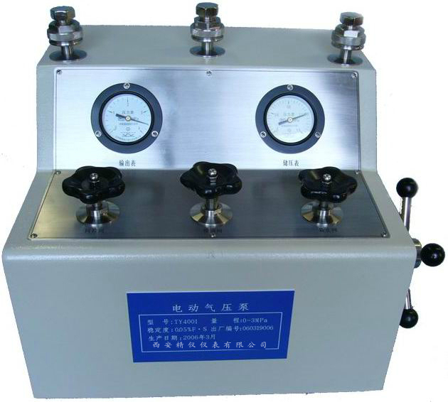 XY4001電動(dòng)氣壓源為臺(tái)式結(jié)構(gòu),采用功率低、轉(zhuǎn)速平穩(wěn)的電機(jī)帶動(dòng)泵體動(dòng)作加之二次螺旋增壓泵與壓力指示表、壓力儲(chǔ)存容器、微調(diào)閥、回檢閥、輸出管路組成一個(gè)高穩(wěn)定度的氣壓發(fā)生源。可為校驗(yàn)壓力(差壓)變送器、精密壓力表、普通壓力表及其它壓力儀器儀表提供壓力源。