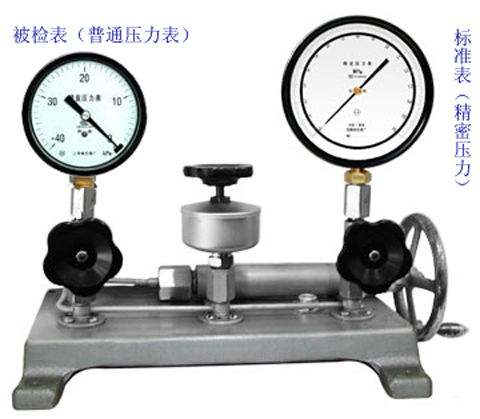 在實驗室或計量室一般配合精密壓力表(精度較高可達到0.25級)來檢測普通壓力表(精度為1.6或2.5)。